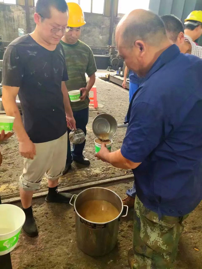 在公司高層領(lǐng)導(dǎo)的統(tǒng)籌下,食堂工作人員5點(diǎn)鐘就開始熬制綠豆稀飯,每天下午3點(diǎn)半左右馬煉、黃波、肖贊等人給車間送綠豆稀飯、藿香正氣液、藿香正氣丸等防暑降溫用品(沒煮稀飯的這天就發(fā)放冰西瓜),希望能在炎熱的盛夏把清涼送到生產(chǎn)車間,把關(guān)懷送到員工的心坎。