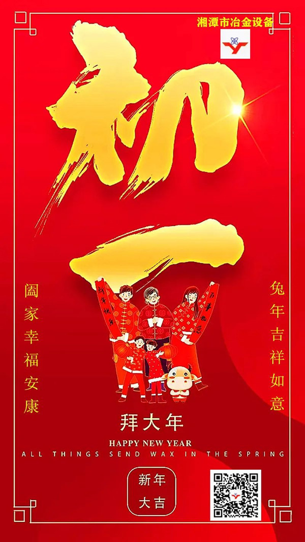 金虎呈歡辭舊歲,福兔躍起迎新春。 湘潭市冶金設(shè)備發(fā)展、成長的每一步,都凝聚了各位客戶、合作伙伴和各界朋友的關(guān)懷、信賴與支持,以及全體湘冶家人的辛勤耕耘與打拼。充滿機遇與挑戰(zhàn)的2023,我們將信心滿懷,堅守初心,沿著既定的宏偉目標(biāo),再譜新篇章。 值此兔年春節(jié)到來之際,國內(nèi)冶金礦山設(shè)備非標(biāo)定制專家——湘潭市冶金設(shè)備制造有限公司恭祝大家:春節(jié)團圓美滿!闔家幸福安康!在大展鴻兔、兔飛猛進的2023年里,好運常在!笑口常開!開心每一秒,快 樂每一天,幸福連連,健康久久!