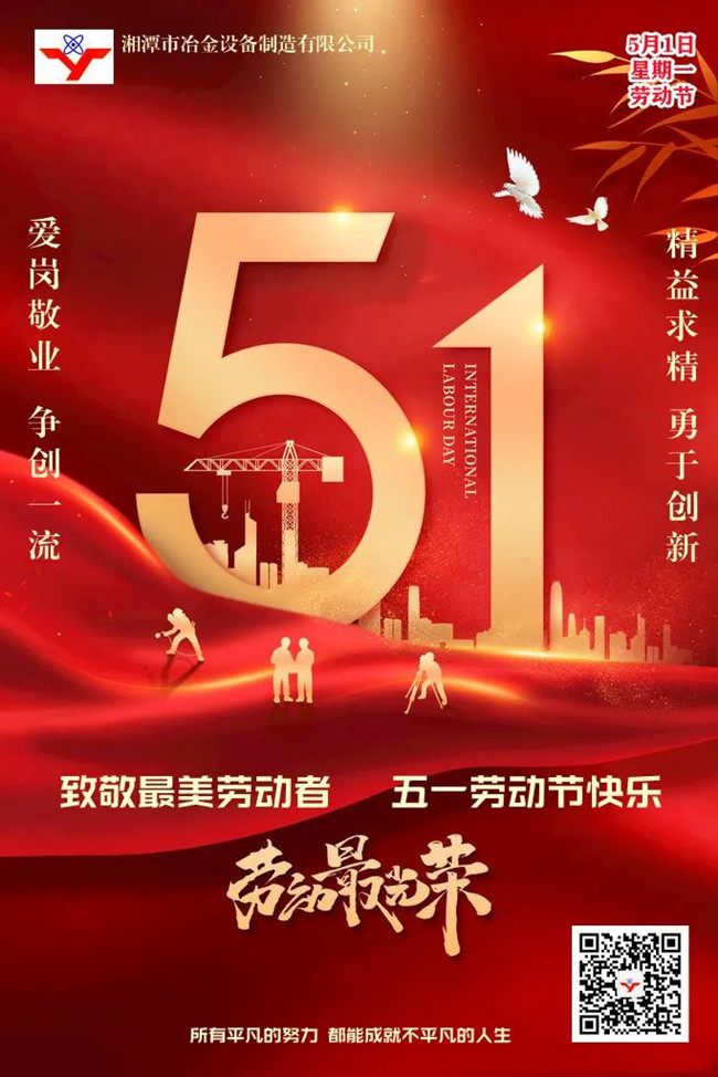 值此五一國際勞動(dòng)節(jié)來臨之際,湘潭市冶金設(shè)備制造有限公司祝所有朋友、伙伴和家人們:五一快樂!家庭幸福!假期開心!