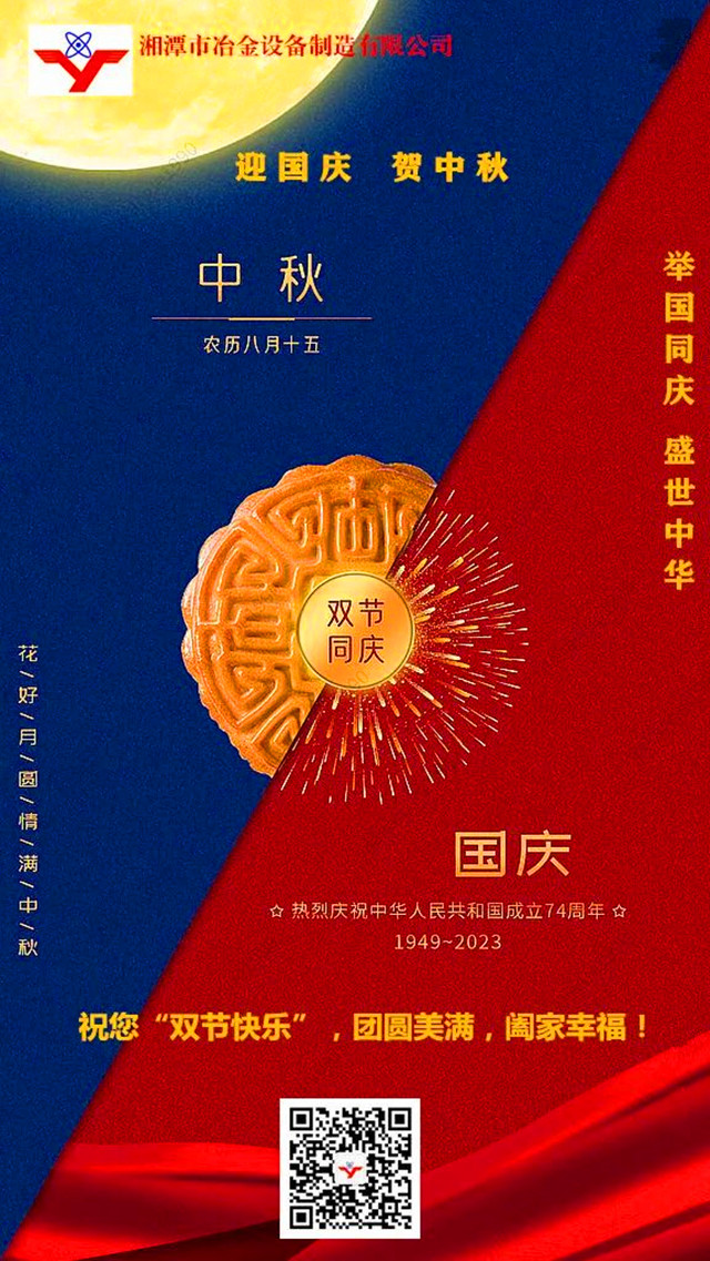 值此中秋、國慶“雙節(jié)”來臨之際,真誠地向辛勤工作在各個(gè)崗位的湘冶家人們致以節(jié)日的慰問并道一聲:大家辛苦了!同時(shí),也真誠地向支持公司發(fā)展的新老客戶、合作伙伴、社會(huì)各界朋友、職工家屬們致以誠摯的感謝與節(jié)日的問候。